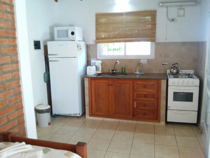 Equipado con Anafe, Heladera bajo mesada, Microonda, Cafetera, Tostadora